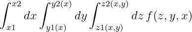 tplquad(arg::Function, x1, x2, y1::Function, y2::Function, z1::Function, z2::Function; method = :cuhre, kwargs...)