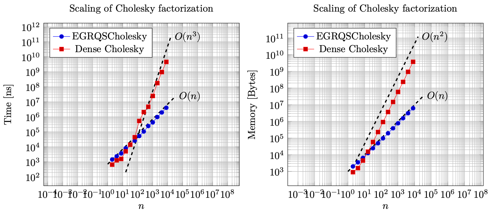 All implemented algorithms (multiplication, Cholesky factorization, forward/backward substitution as well as various traces and determinants) scales with