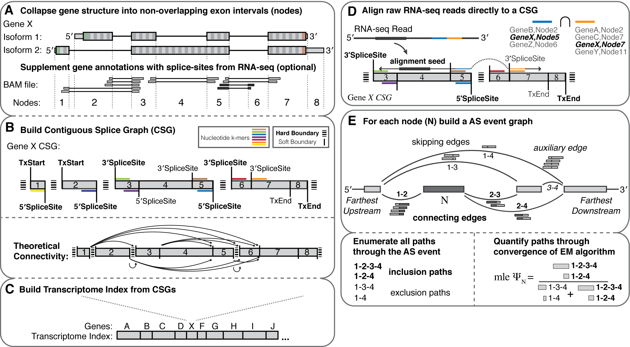 - de novo AS event discovery (between indexed donor/acceptor splice sites)
