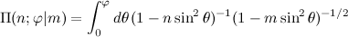 Incomplete elliptic integral of the third kind, Π(n; φ | m) |