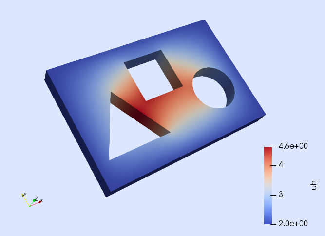 | Poisson eq. with DG | Darcy eq. with RT | Incompressible Navier-Stokes | Isotropic damage |